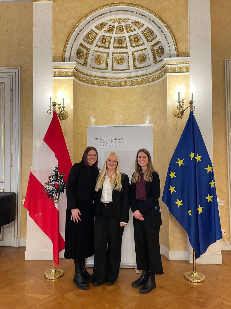 Als eine der Gewinnerinnen und Gewinner lud der Bundesminister ao. Univ.-Prof. Dr. Martin Polaschek unsere Schülerin Lenja am 13. Dezember zu einem Empfang in den Audienzsaal des Bundesministeriums für Bildung, Wissenschaft und Forschung (BMBWF) ein. Im Beisein der Sektionschefin Doris Wagner, M.Ed., BEd wurden die im Ministerium ausgestellten Kunstwerke besichtigt und prämiert.