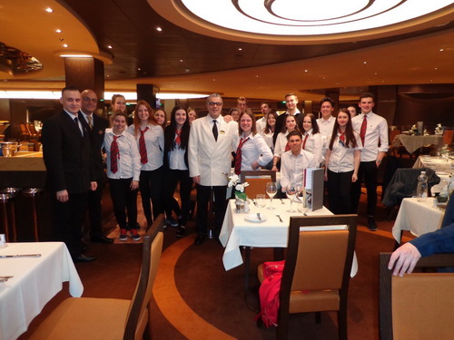 Da unser nächstes Ziel die spanische Stadt Barcelona war, verbrachten wir den ganzen Tag an Bord. So bekamen wir die einmalige Möglichkeit, „hinter die Kulissen" des Schifflebens zu blicken und wurden dabei sogar von einem der Restaurantleiter durch die Servicebereiche geführt. Ein ganz besonderes Highlight an diesem Tag war der 18. Geburtstag unserer Mitschülerin Rebecca Hausberger.