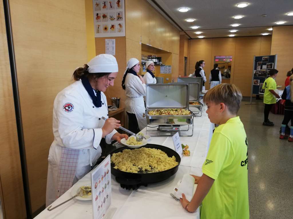 Hierfür wurde ein fächerübergreifender „Organisationsplan“ erarbeitet: In Ernährungslehre lagt der Fokus auf der Sporternährung, im Betriebspraktikum wurden Kalkulationen für ein solches Großevent durchgeführt und die Fächer Serviceorganisation und Küchenmanagement spezialisierten sich auf die Bereiche Veranstaltungs- sowie Großküchenmanagement.