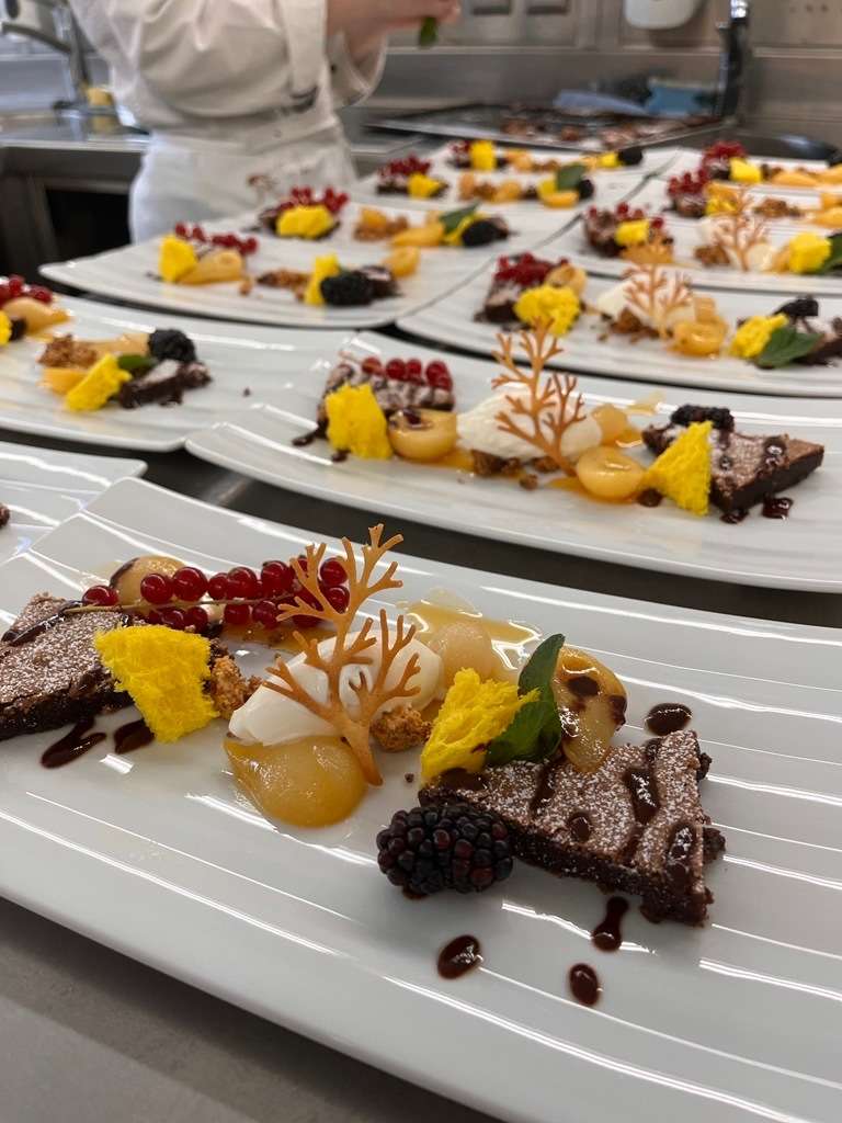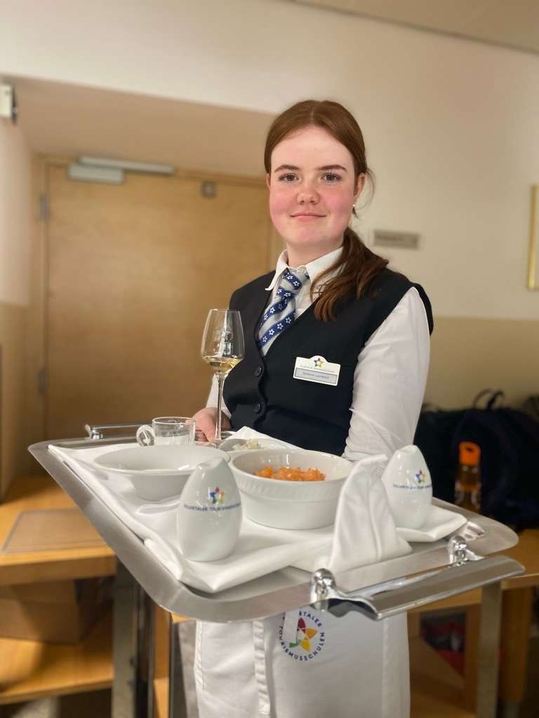 Im Rahmen eines mehrgängigen Menüs, welches auf Vorprüfungsniveau gekocht und serviert wurde, stellten die Schüler:innen ihre Fähigkeiten und Kenntnisse im fachpraktischen Bereich eindrucksvoll unter Beweis. Ein besonderes Projektziel bestand darin, die in den vergangenen 4 Jahren erworbenen Skills sowie das erlernte Wissen vor Ort den Eltern zu präsentieren.