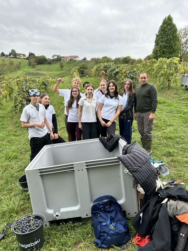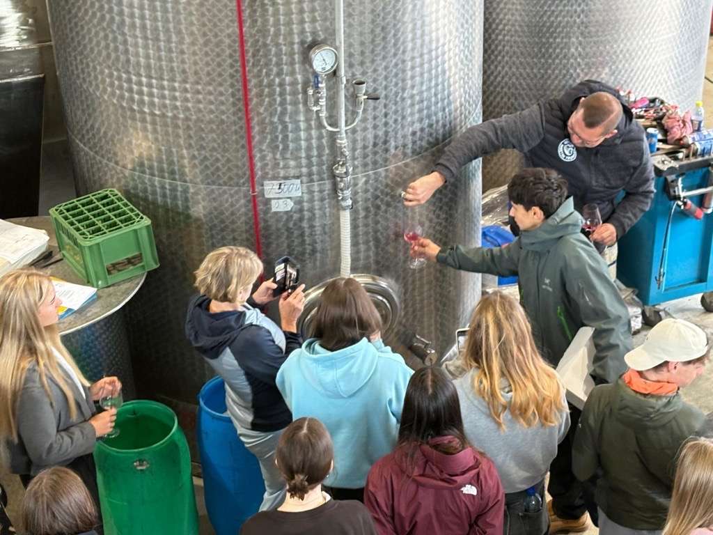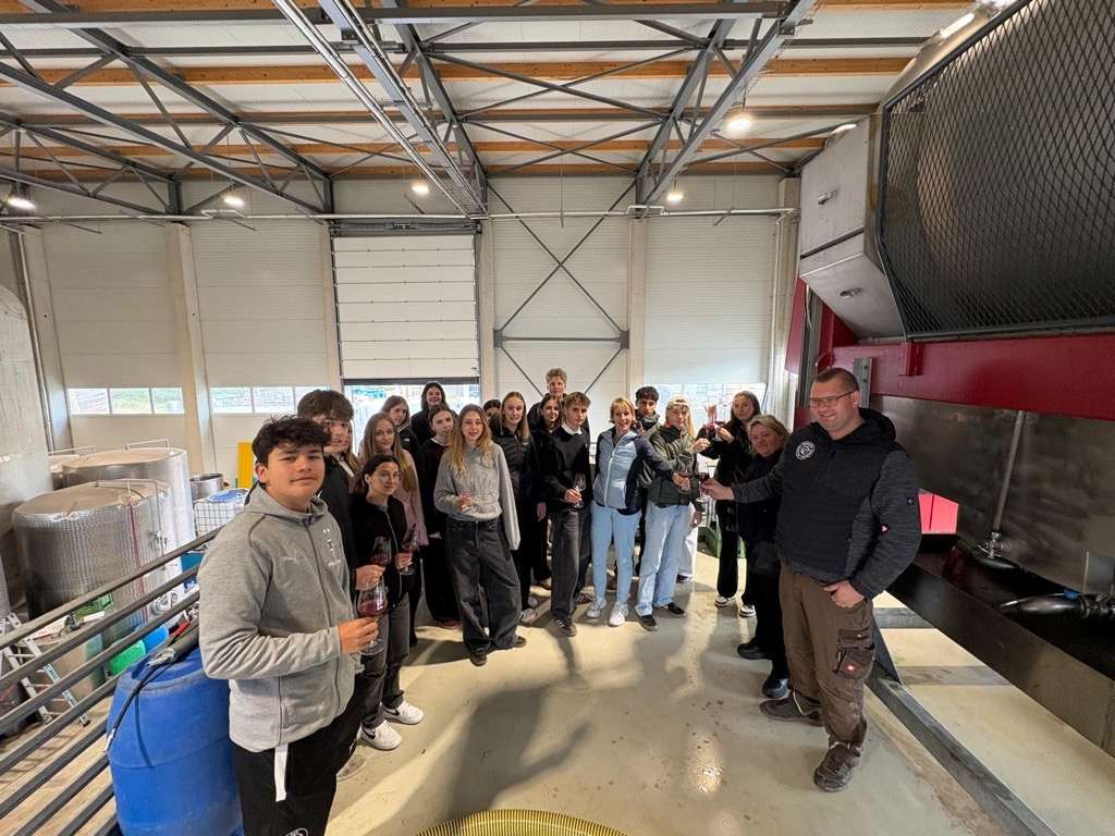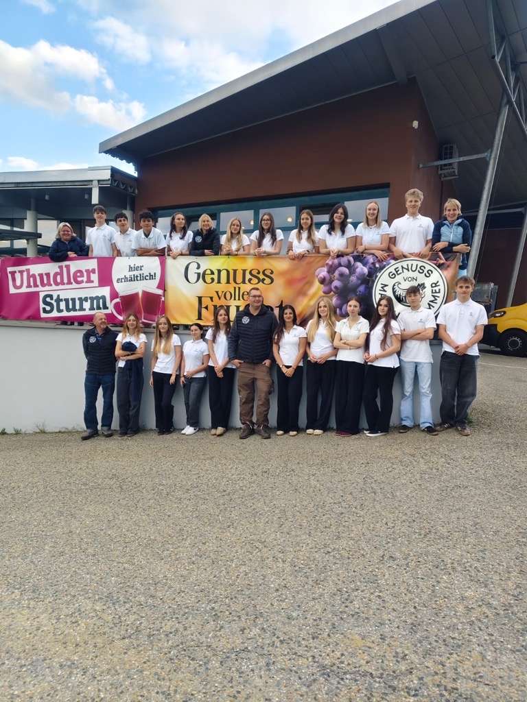 Zum Abschluss des Projekts erfolgte die Pressung der gelesenen Trauben sowie eine fachkundige Einführung in die Herstellung von Uhudlerwein und Schaumwein. Der frische Traubensaft und der Sturm direkt aus dem Tank vermittelten einen authentischen Eindruck des Produktionsprozesses. Nach der Besichtigung des Betriebsgeländes in Stegersbach trat die Gruppe die Heimreise an.
