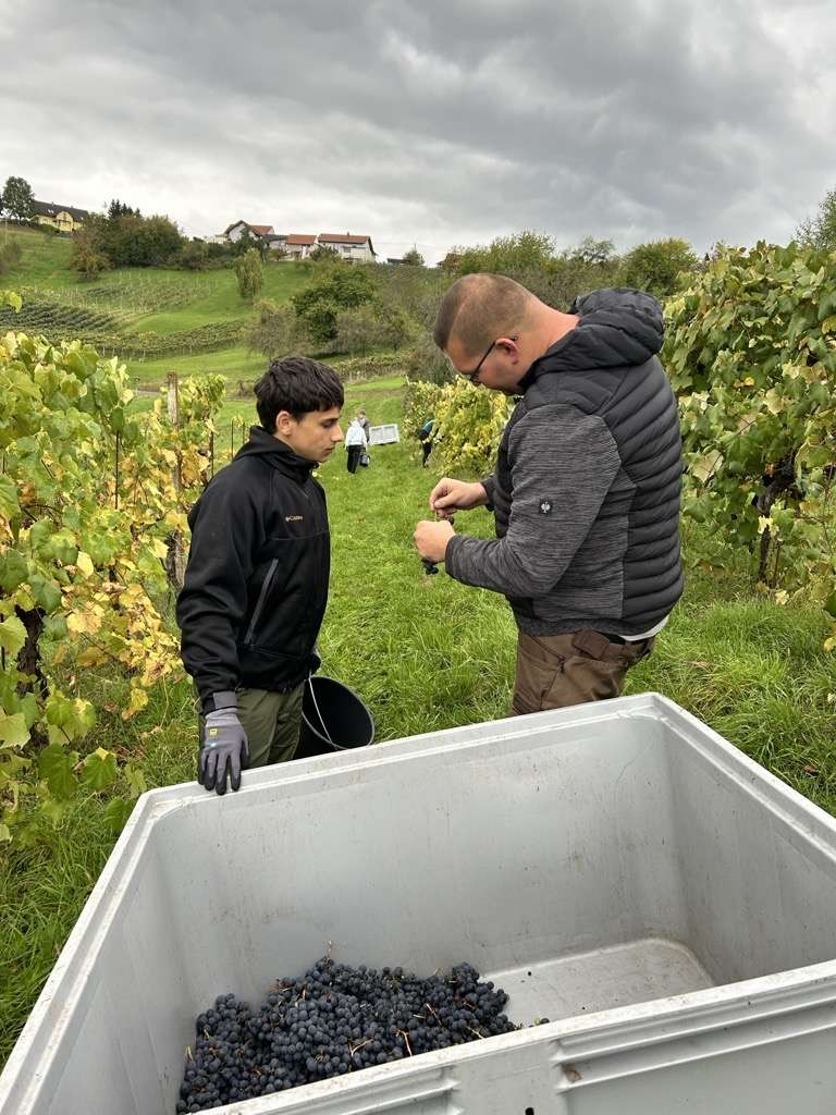 Im weiteren Verlauf setzten die Gruppen ihre Projekte fort und wechselten ihre Aufgabenbereiche. Insgesamt konnten rund drei Tonnen Trauben gelesen werden. Ein besonderer Höhepunkt war der Besuch der Nudelfabrik Bischof-Nudeln, in der unter anderem Uhudler-Nudeln in Handarbeit hergestellt werden. Dort gab es interessante Einblicke in die Verwendung von Uhudlermehl und den handwerklichen Produktionsprozess. Den Abend beschloss eine Einladung von Herrn Trummer zu Pizza und Getränken.