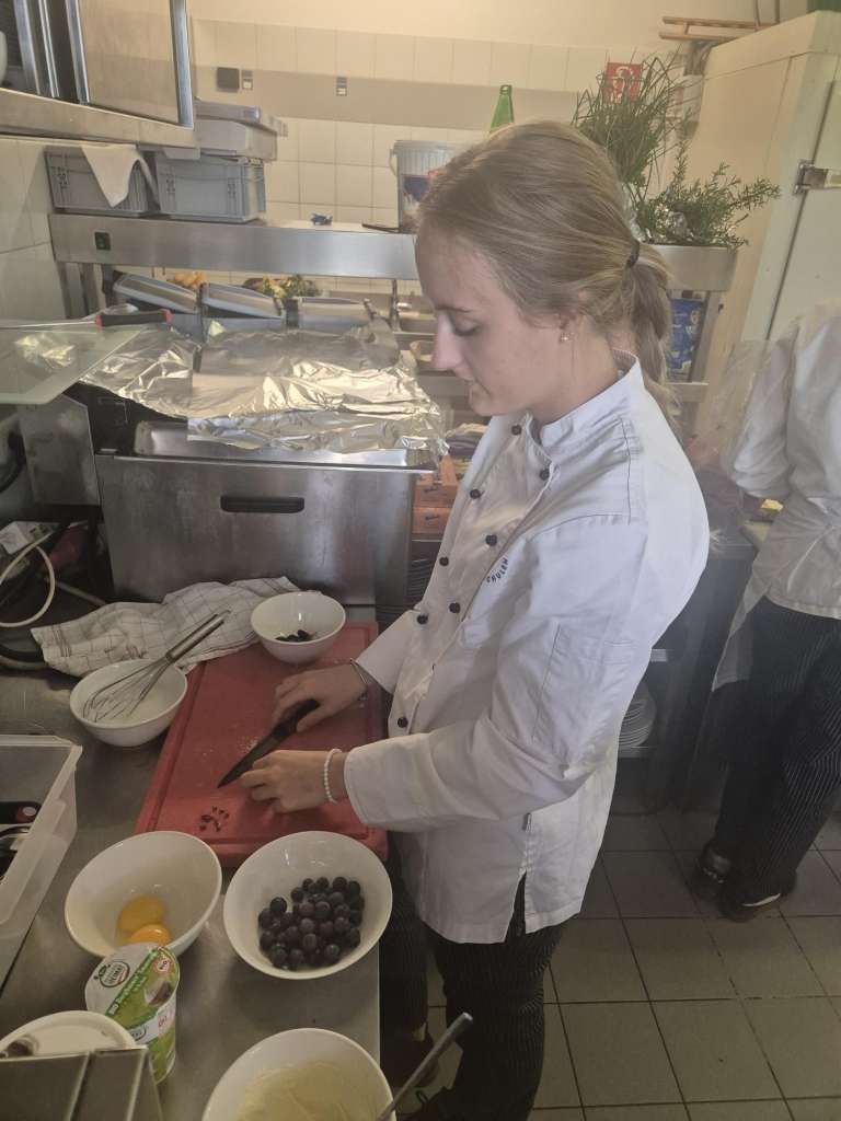 Am folgenden Tag stand die Lese der Uhudlertrauben im Mittelpunkt. Während eine Gruppe im Weingarten tätig war, bereitete die andere im Buschenschank am Riegelberg kulinarische Kreationen mit den Trauben zu. Gemeinsam mit Herrn Trummer entstand dabei ein neues Siruprezept, das – ebenso wie der geplante Schaumwein und ein viergängiges Menü – die Uhudlertraube in den Mittelpunkt stellte. Unter fachkundiger Anleitung erfolgte außerdem eine Verkostung verschiedener Uhudler-Getränke.
