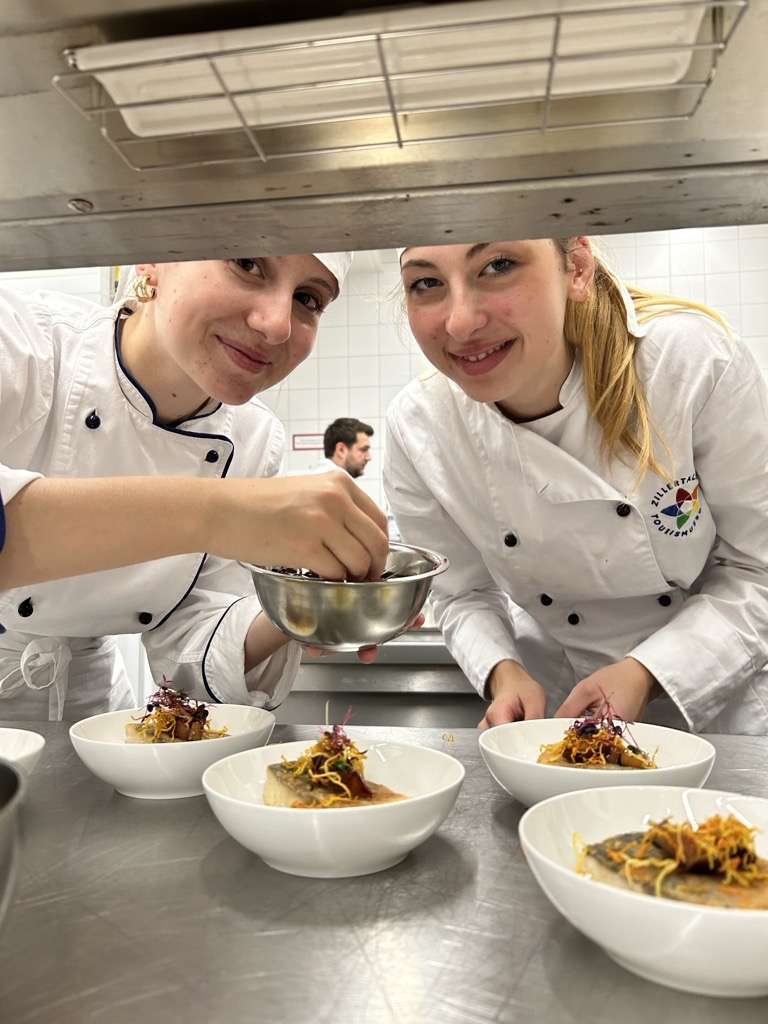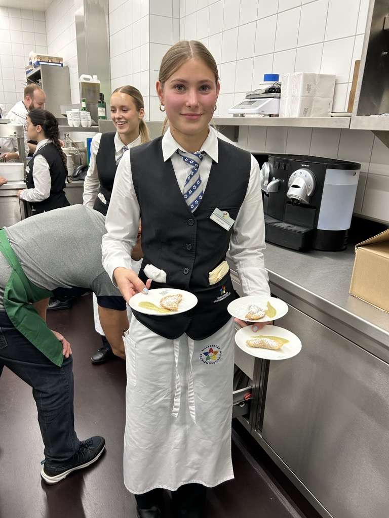 Unter der fachkundigen Begleitung von FL Margit Hirzinger und FL Manuela Taibinger konnten die Schüler:innen ihr Können unter Beweis stellen, Einblicke in die Arbeit auf höchstem kulinarischem Niveau gewinnen und zugleich wertvolle Praxiserfahrung sammeln.